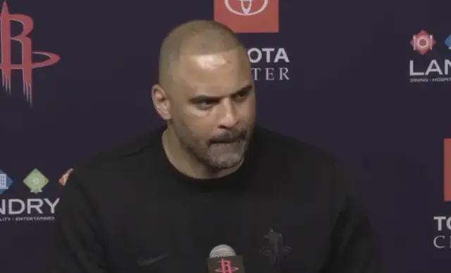 因为赛前申京不打,乌度卡还是没把谢泼德放进首发,而是上了电风扇,并继续保持伊森。但效果很差,赛后乌度卡谈到了首发问题,他说不让谢泼德上场,是为无限换防鹈鹕。但以现实角度来分析,乌度卡这首发调整一点用没有,电风扇在场一个投不进,伊森也手感冰冷。真的还不如上谢泼德首发,反正你也防不住,不如上小谢去抡。